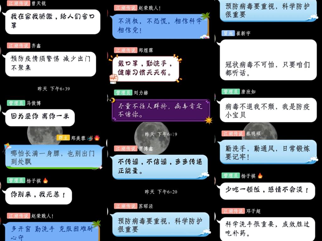 作为新时代青年,更应该彰显责任与担当。运输1904班开展疫情防控主题班会,制作抗疫宣传海报,写下助力诗篇,并拍摄如何正确佩戴口罩的视频,保护自己的同时,共同抗击疫情、战胜病毒。主题班会上,班长向同学们提出三点建议:第一,要客观认识疫情、科学有效防护,不信谣、不造谣、不传谣;第二,按照学校疫情防控工作的部署要求,准确报送个人信息,严禁私自提前返校;第三,认真进行网课学习,合理制定学习计划,做到防疫学习两不误。