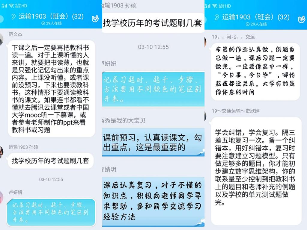 同时,运输1903班同学们集思广益,一起讨论新学期如何更好地学习,博采众长,为了本学期全班同学的学习能更上一层楼,共同支招,一起努力。