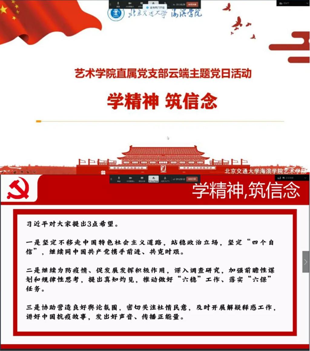 不忘初心担使命,凝心聚力抗疫情。此次新冠肺炎疫情的暴发,对于大家而言,不仅仅是一次重大的考验,同时也是一堂生动的爱国主义教育课。德赢官网艺术学院直属党支部通过线上视频会议的方式,组织学院全体党员以及新一期入党积极分子,开展“战疫情、强信念、担使命”云端主题党日活动。