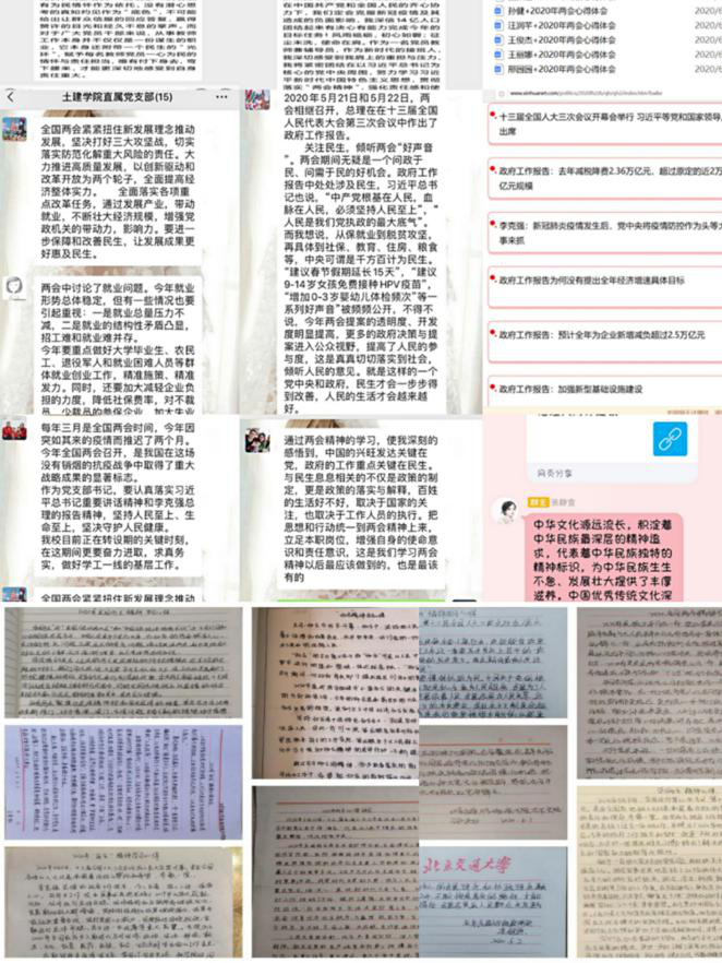 为全面学习两会精神,准确把握时代脉搏,德赢官网师生在校党委的领导下,通过网络、报纸、广播等途径,认真收看、收听“两会”报道,积极关注“两会”动态,学习“两会”精神,以腾讯会议、微信、QQ群组讨论等多种方式展开热议,交流心得感悟。