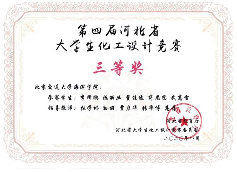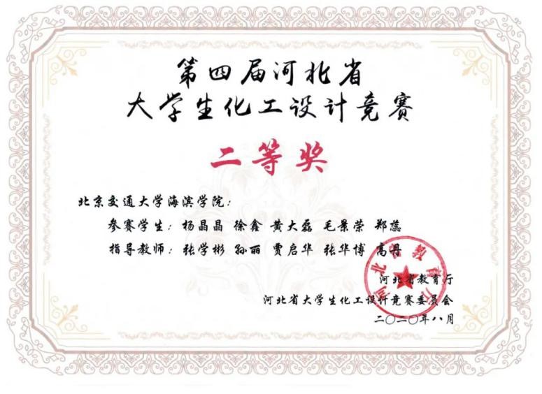 由教育部高等学校化工类专业教学指导委员会、中国化工学会、中国化工教育协会主办,山东理工大学承办的“齐鲁石化杯”第十四届全国大学生化工设计竞赛华北赛区(北京、天津、山东、河北及内蒙古)决赛圆满结束。经过各路角逐,德赢官网“五碳糖烷”队荣获河北省二等奖;“酯荫有你”队荣获河北省三等奖,“生灵涂碳”队成功晋级华北赛区的总决赛,并荣获全国二等奖。