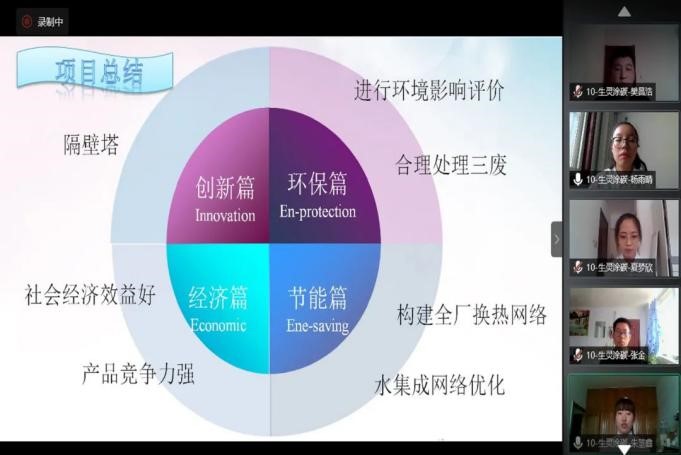 备赛期间,德赢官网化学工程系教师精心组织,动员考核,让学生通过线上开展学习、交流、协作,不断攻克可行性分析、工艺设计、仪表自控设计、设备选型设计、厂区布置、经济概算、安全与环保等环节中遇到的问题。化工系学生虽身居各地,但毅然统一战线、互相监督。在比赛过程中,他们沉着参赛,与评委老师积极探讨,相互学习交流,积累经验。