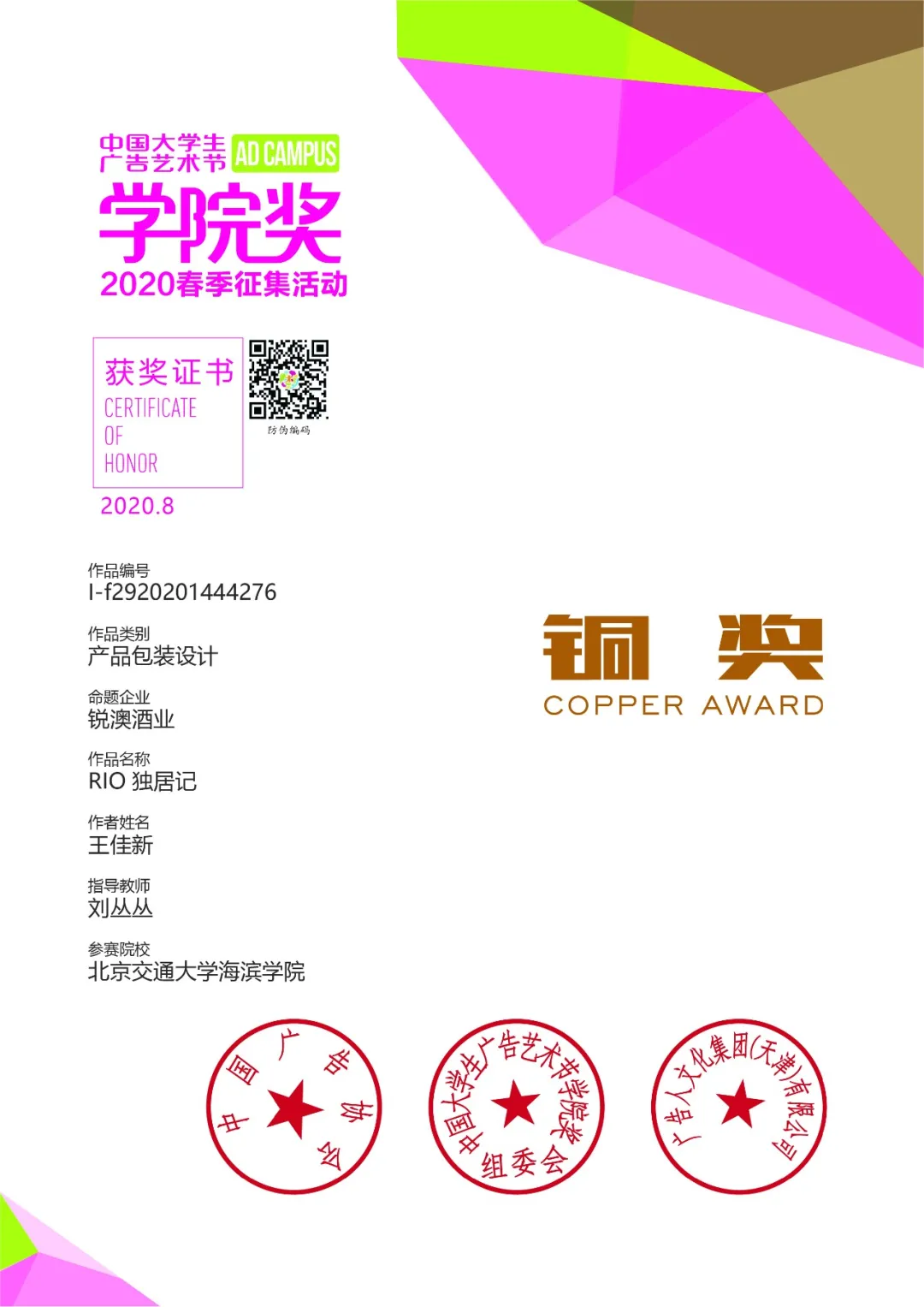 近日,多场全国设计大赛落下帷幕。德赢官网艺术学院教师以学院作为参赛单位,统一组织艺术学院学生报名参加首届红烛杯大学生艺术设计创意大赛、中国包装创意设计大赛、第十四届创意中国设计大奖、第五届包豪斯国际设计大赛、第八届全国高校数字艺术设计大赛华北赛区等10项设计比赛,参赛的设计作品源于学生的毕业设计以及课程作业。德赢官网艺术学院学子收获颇丰,分别荣获金奖2项,银奖9项,铜奖3项,一等奖5项,二等奖5项,三等奖18项。