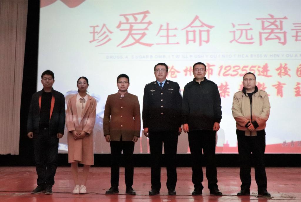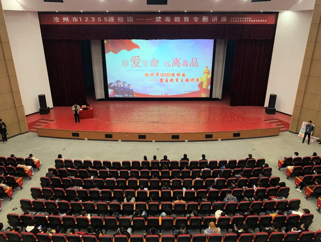 讲座中,黄骅市公安局禁毒大队民警曹勇以介绍什么是毒品为开端,结合近几年的吸毒事件,将本次讲座分为毒品的分类、毒品的危害、防毒和拒毒技能等方面。他以丰富的案例、生动的语言向师生们讲述远离毒品的重要性,向在场每位师生提出一日吸毒、终身戒毒,吸毒是条高压线的警言。