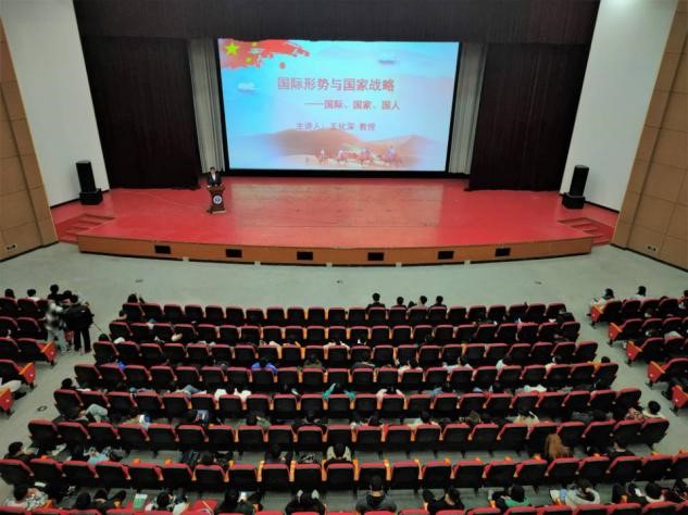 谈发展战略,为时代筑梦。王校长结合党的十九届五中全会对国家发展新战略进行深刻阐述,他向大家表明了在深化改革开放中构建新发展格局的重要性,接着,王校长结合“一带一路”建设、京津冀协同发展、长江经济带发展、粤港澳大湾区发展等国家战略进行深入剖析,面面俱到,使在场师生对国家发展战略有了更加深入的认知。