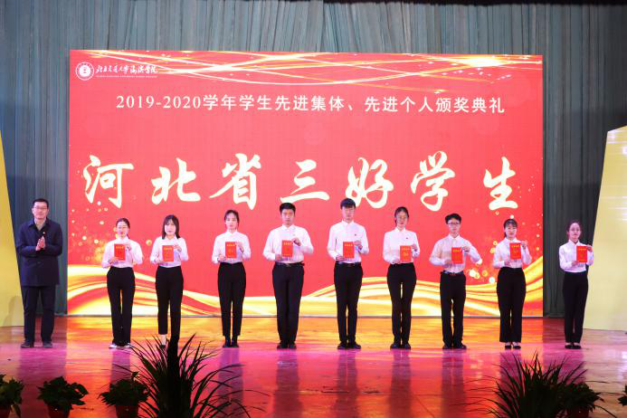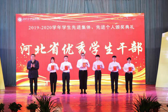 党委副书记魏炜为获得“优秀宿舍奖学金”“河北省三好学生”“河北省优秀学生干部”的代表颁奖