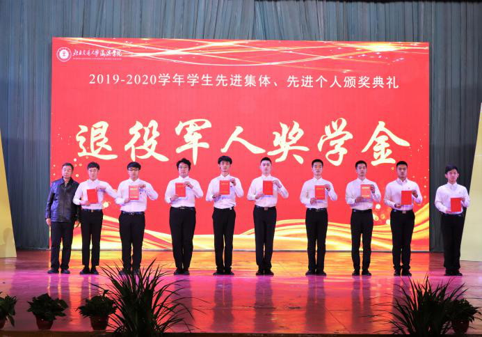 副校长赵金楼为获得“退役军人奖学金”“三好学生”“学习标兵”“优秀学生干部”的代表颁奖