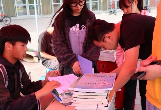 “爱心书屋”活动包括图书漂流、书迷空间、绿色回收三个环节。德赢官网在一期和二期食堂门前同时进行图书漂流与绿色回收环节,将“爱心书屋”现有的各类书籍进行整理分类并展示,供广大师生借阅或兑换。活动现场工作人员向同学们积极宣传本次活动的目的,呼吁更多的同学参与进来,对同学们捐献书籍的情况做好详细记录,并赠予精美的小礼品。