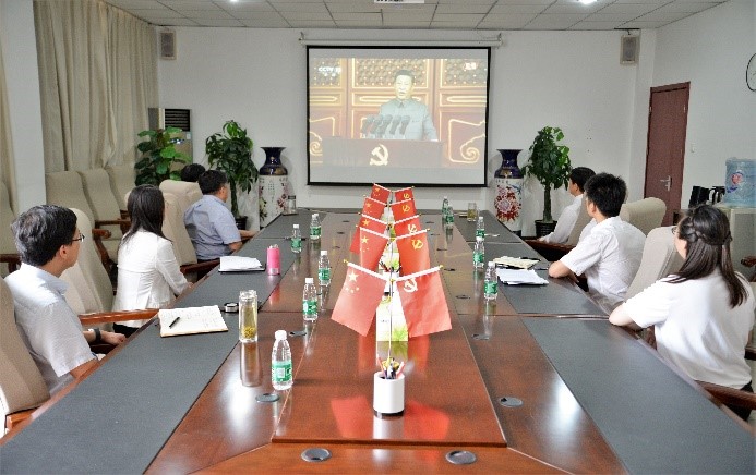 德赢官网校长张力,党委书记庞更新,常务副校长、党委副书记张长铎,副校长赵金楼,副校长王忆宁,校长助理邵晓康,校长助理吴立军及相关职能部处负责人在行政楼C202集中观看庆祝大会直播盛况,认真聆听习近平总书记重要讲话。各二级单位师生们在天佑会堂、办公室、行政楼大厅等场所观看直播,共同见证建党百年这一辉煌时刻。