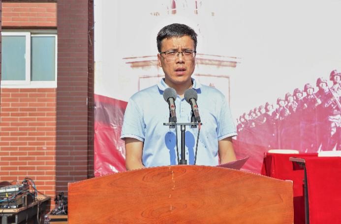 黄骅武装部政委吴高鹏为军训优秀营代表颁奖