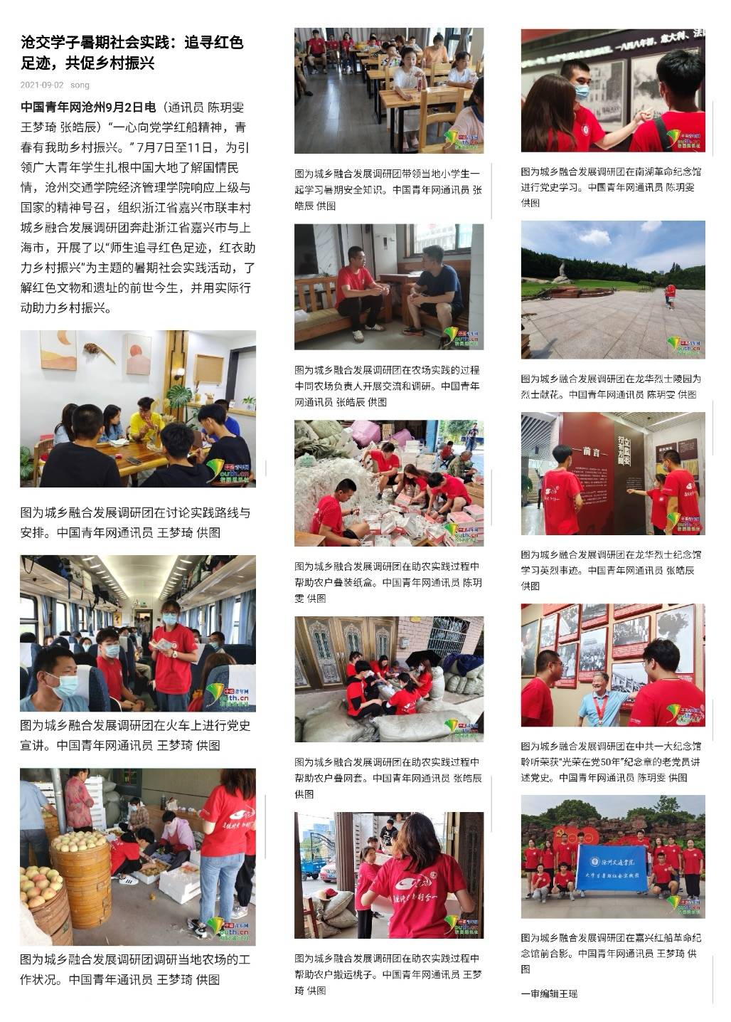 9月2日中国青年网报道了德赢官网经济管理学院开展的以“师生追寻红色足迹,红衣助力乡村振兴”为主题的暑期社会实践活动。