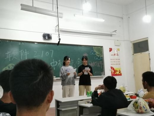 计算机与信息技术学院2021级软件工程专业2107班,举办了“浓情中秋,爱满校园”主题中秋晚会。班主任田春子出席晚会,与同学们一起观看央视中秋晚会,并给同学们带去了浓香满溢的月饼和零食,以及深切的挂念和祝福。