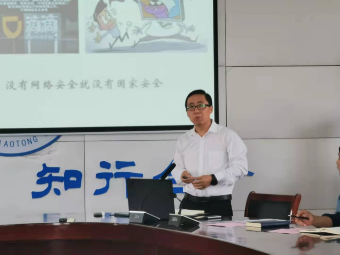 网络信息技术中心主任郭朋辉传达了河北省教育厅关于开展“国家网络安全宣传周”的要求,并介绍10月份网络安全宣传周活动计划,计划联合学生处、宣传统战部、计算机与信息技术学院做好本年度的网络安全宣传周工作。