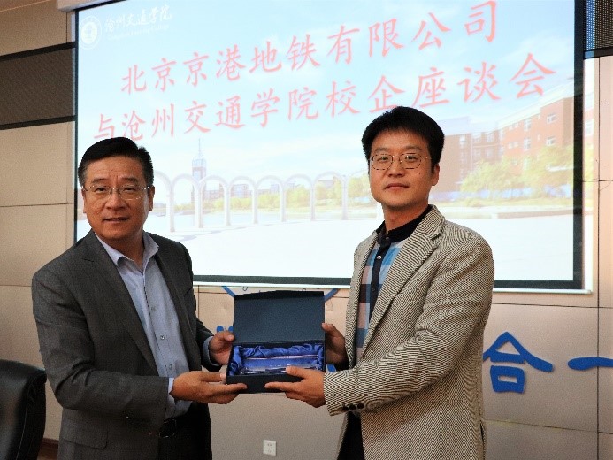 会后,校长助理邵晓康代表学校收下北京京港地铁有限公司赠予德赢官网的礼物。