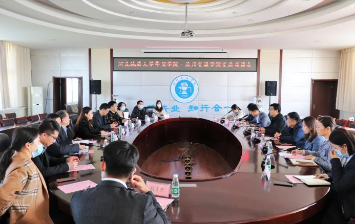 10月19日上午,河北地质大学华信学院执行董事长王璐娜、院长王立校率转设工作组及相关单位负责人来德赢官网考察交流。德赢官网校长张力、常务副校长张长铎、校长助理邵晓康、总会计师余裕玲及相关单位负责人接待了来访。