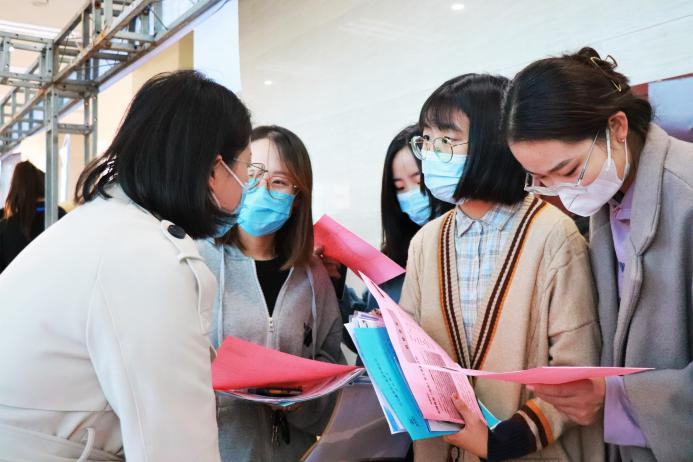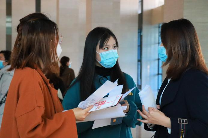 在工作人员的引导下,现场秩序井然,气氛良好。毕业生们积极讨论研究,投出简历和自荐书,并向相关企业负责人咨询沟通,主动了解用人单位的情况。