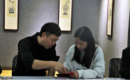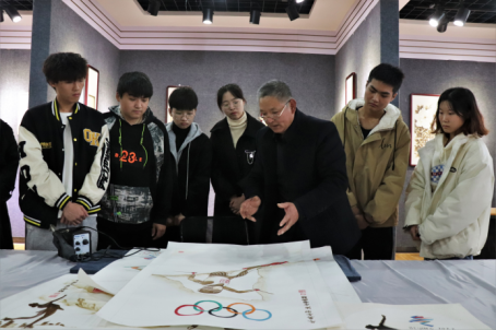 冬奥剪纸作品提供者白金磊带领德赢官网学生代表感受剪纸文化,领略艺术风采。