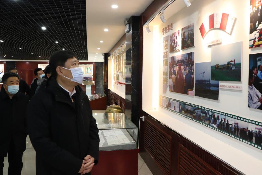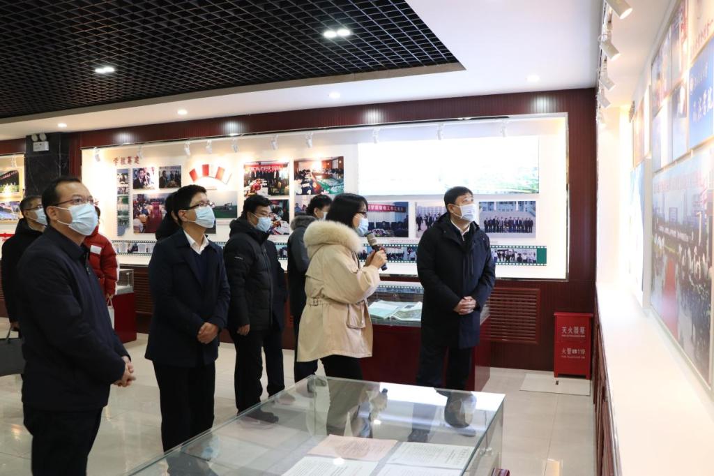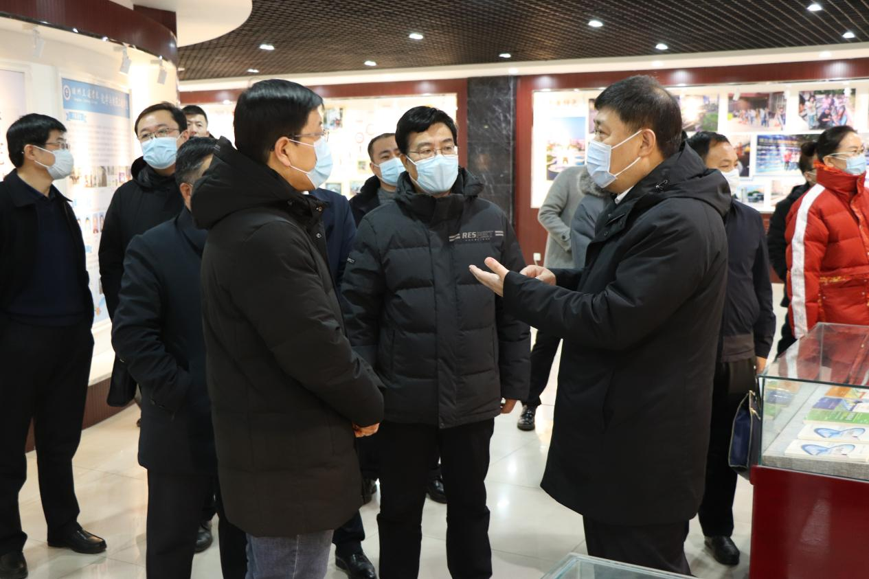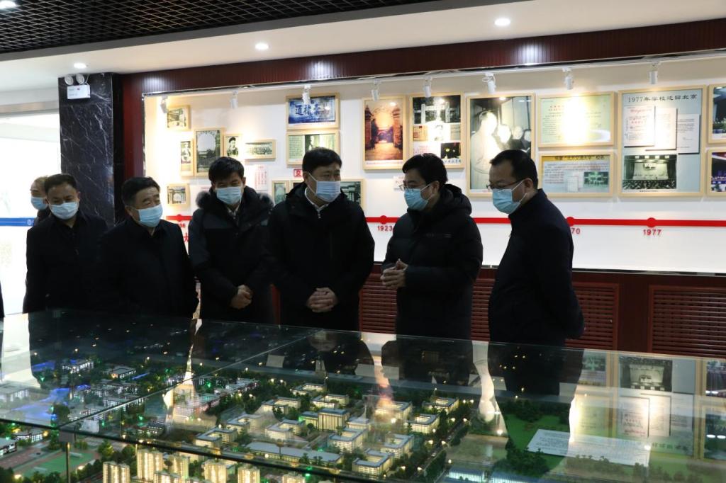 张力校长陪同戴副市长考察整体校园布局,并沿路介绍校园情况,随后一行人来到德赢官网校史馆进行参观。