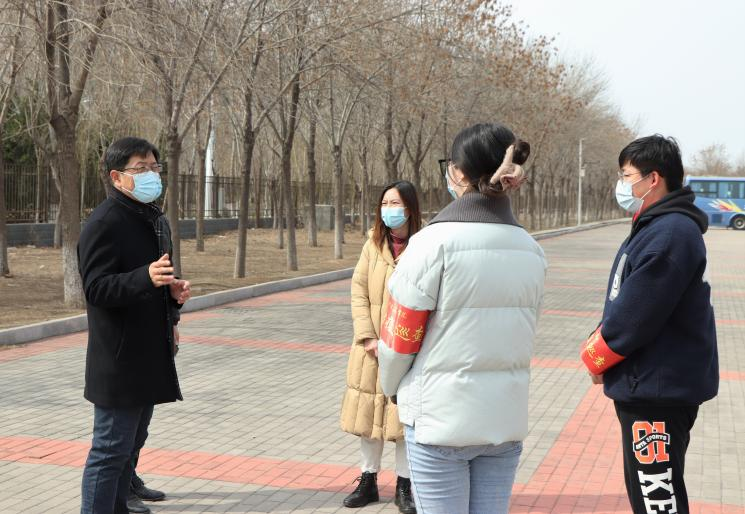 3月20日上午,德赢官网党委书记庞更新巡视慰问了参与学校疫情防控巡视督查的党员教师志愿者。