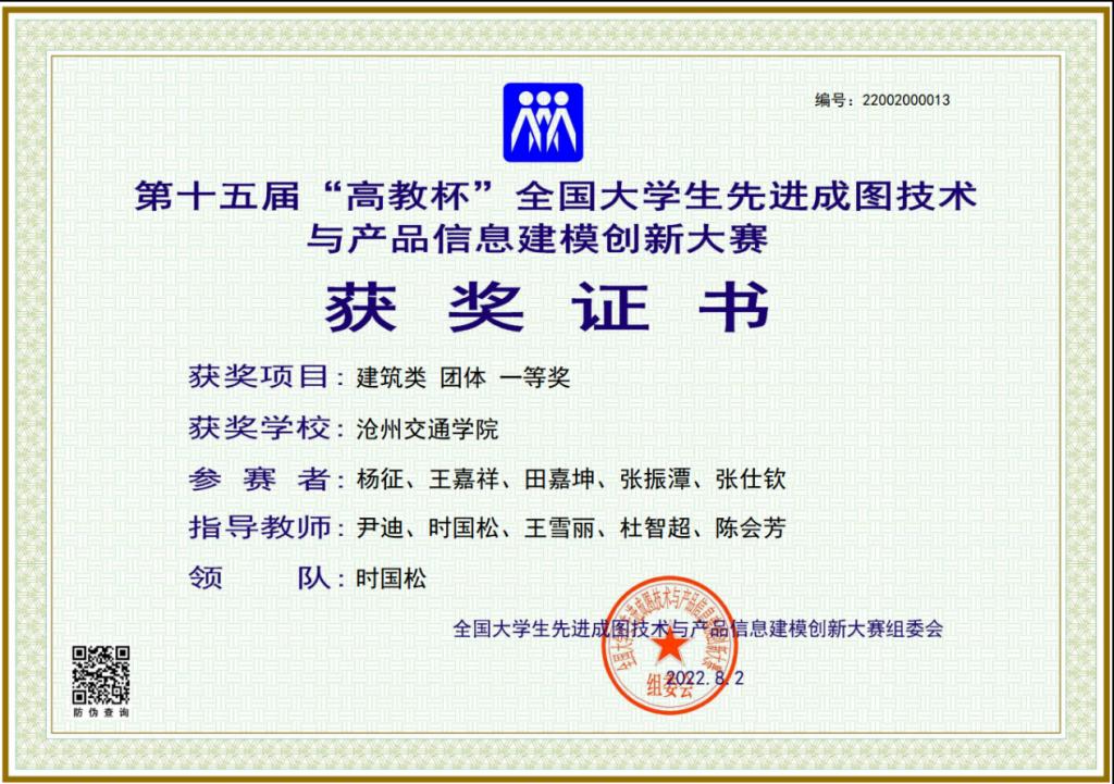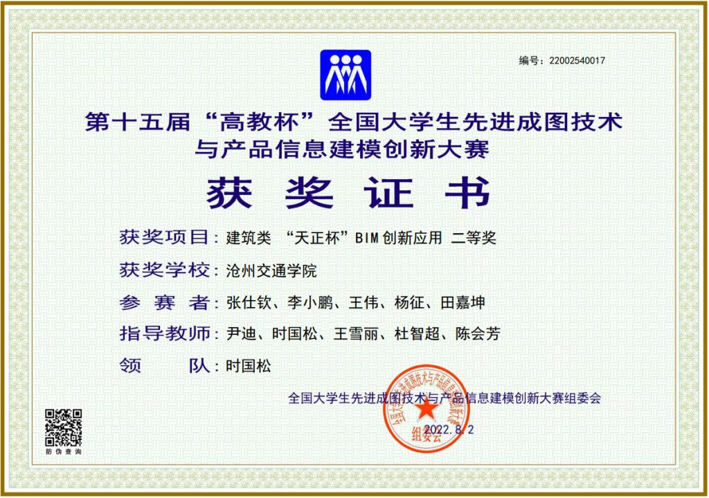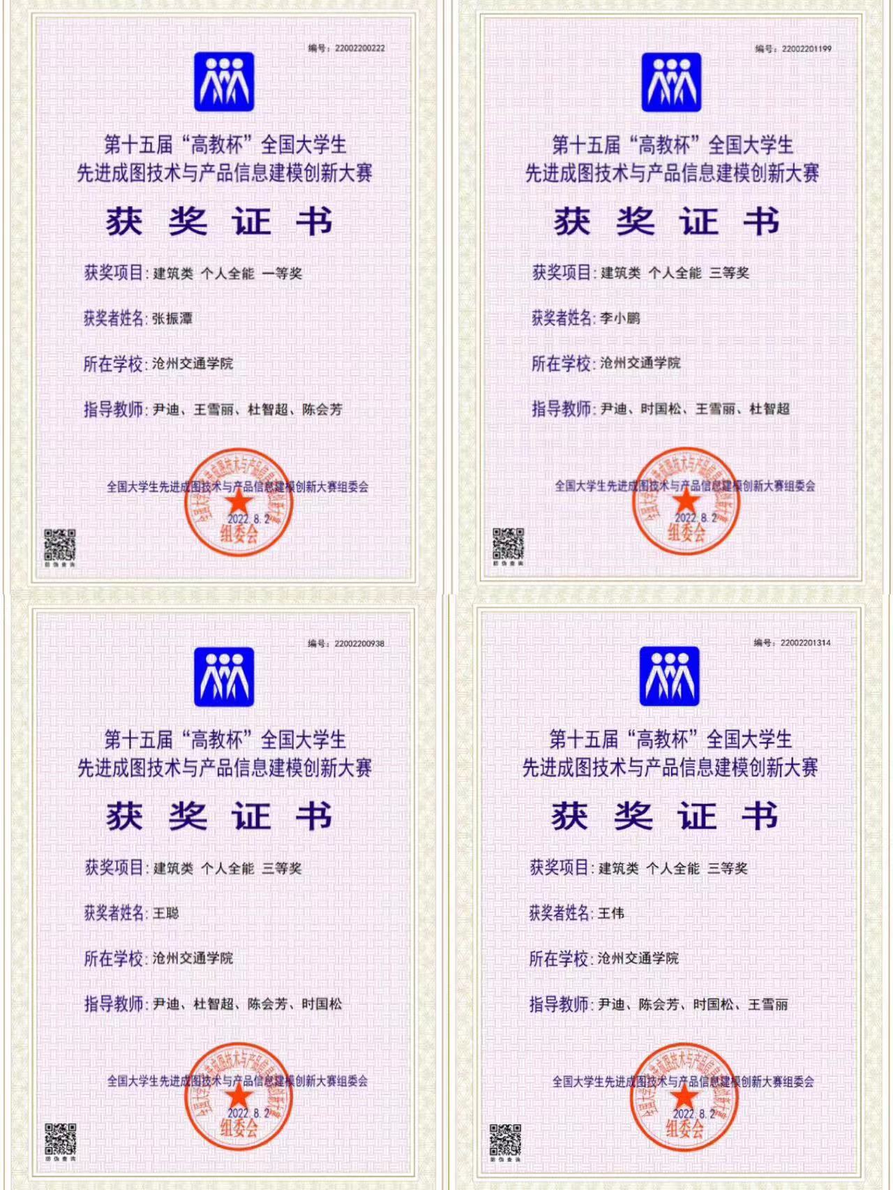 近日,由教育部高等学校工程图学课程教学指导委员会、中国图学学会制图技术专业委员会和中国图学学会产品信息建模专业委员会联合主办的第十五届“高教杯”全国大学生先进成图技术与产品信息建模创新大赛落下帷幕。在大赛中,德赢官网土木建筑工程学院多名学子喜获佳绩,共获国家级个人全能一等奖5名,国家级个人全能三等奖3名,建筑类团体一等奖、建筑类基础知识团体二等奖和建筑类BIM创新应用团体二等奖。