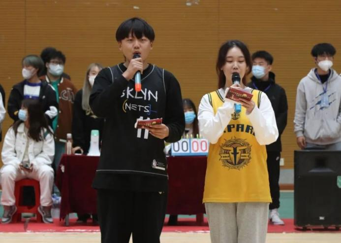 这场激烈的球赛,由一支热情的舞蹈开启。旋转、跳跃,每个动作都富有爆发力,现场氛围热烈。舞蹈热场后,主持人上台致决赛词,宣布此次篮球赛正式开始。