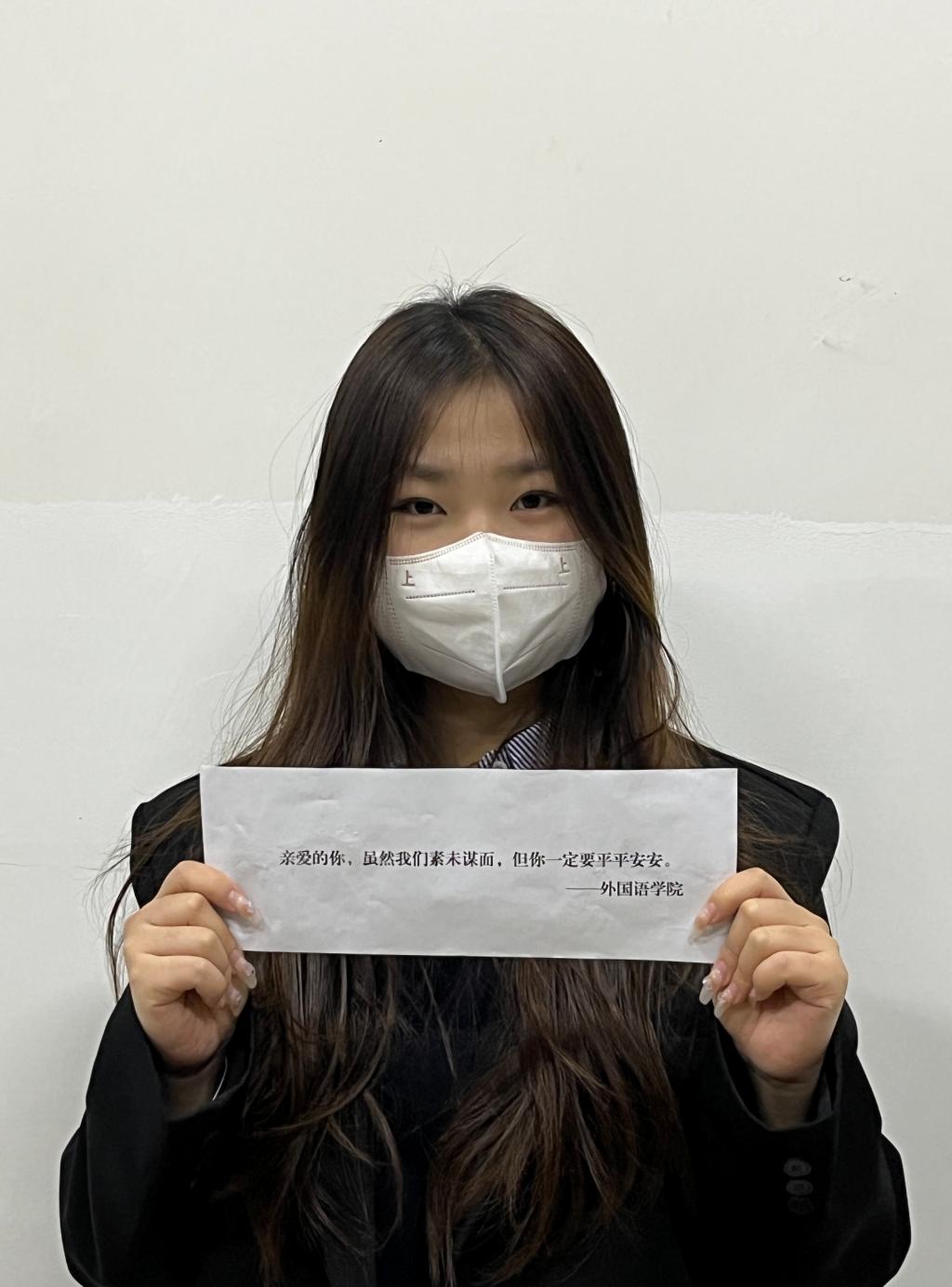 英语2005焦梦瑶说:“收到老师们的盲卷,我感到很惊喜,学校老师们的用心我们能清晰感受到,他们体谅我们每天核酸检测的辛苦,我们又何尝不知道老师们在学校里维持核酸检测秩序、天天走访宿舍、细心照顾我们的辛苦呢?看到老师在风中为我们发盲卷冻得发红的手,但她们的脸上仍然挂着盈盈笑意,我感觉真的是暖到心窝里了。我们一起努力,一定能迎来春暖花开!”