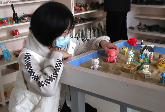大学生活动中心二楼,沙盘室与心理咨询室每日开放,学生们可以通过线上平台和心理热线预约心理咨询和沙盘放松。同学们可以向心理老师倾诉烦恼、排解情绪,老师用专业的知识、温暖的话语和体贴的关怀让学生们扫清了心中阴霾,沙盘室的解压器具让学生们忘却了心中烦恼。“老师一直在温柔地安慰我,设身处地给我建议,那一瞬间我哭得更厉害了,终于有人懂我了,我感觉和老师聊过以后我就不怎么难过了,也想开了很多。”她脸上挂着未干的泪珠,说出的话却带着坚毅与勇敢。