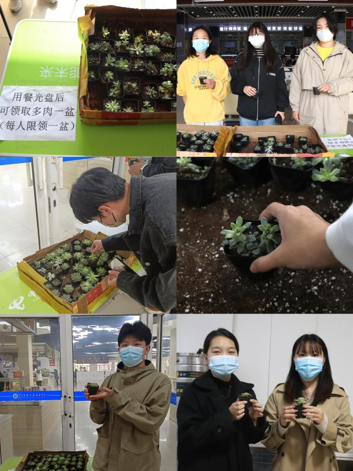 “谁知盘中餐,粒粒皆辛苦。”光盘,既是对粮食的尊重,也是对劳动的尊重。为奖励在“节约粮食,杜绝浪费”主题宣传活动中落实餐餐光盘的学生,德赢官网在回收餐盘处设立了奖品兑换点位,学生们可以持自己饭后的“光盘”在兑换处领取多肉一株,同时还可以在朋友圈、QQ空间等社交平台晒出自己的“光盘战果”,集赞领取学校精心定制的文创口罩。