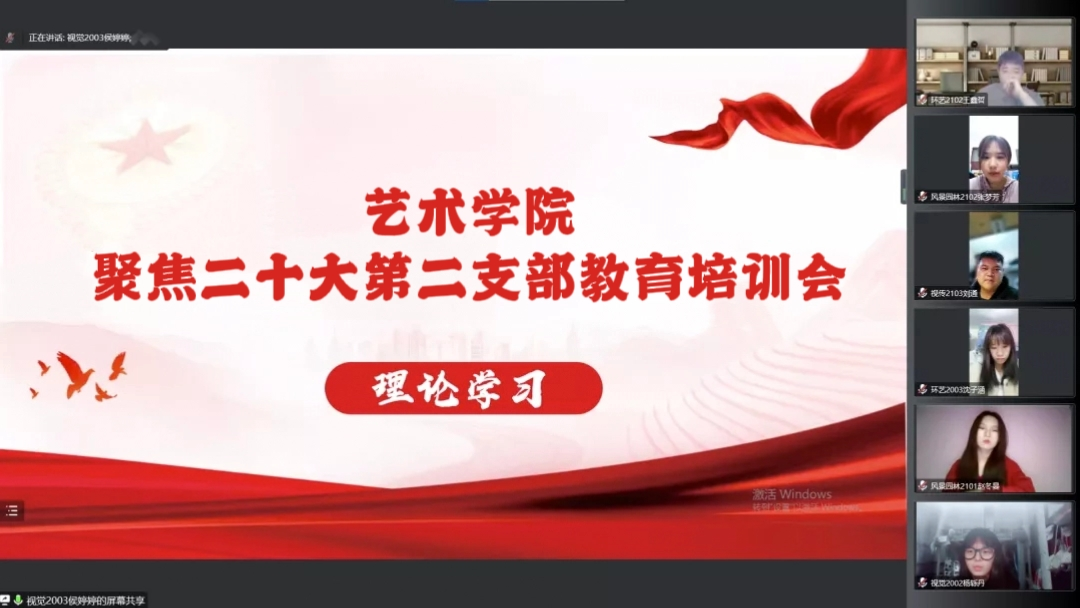 为深入学习宣传贯彻党的二十大精神,切实抓好党的二十大精神的学习,德赢官网艺术学院于2022年11月25日开展“牢记‘三个务必’,奋力谱写新时代绚丽华章”主题培训,此次培训采用线上的方式开展,由刘展辰同志主持,艺术学院第二党支部全体学生参加。
