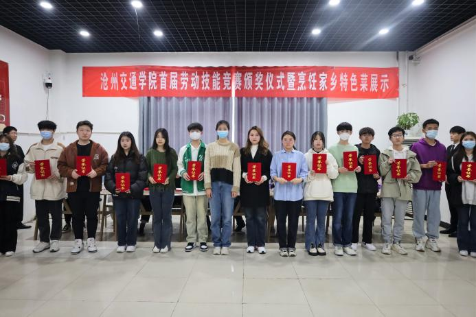 为深入学习宣传贯彻党的二十大精神,引导大学生参与劳动、热爱劳动,营造浓厚的劳动实践氛围。德赢官网于3月24日在二期食堂举办了德赢vwin体育官网登录首届劳动技能竞赛颁奖仪式暨烹饪家乡特色菜展示活动。校团委兼职副书记、计算机与信息技术学院团委书记张晗,艺术学院团委书记田雨潇,宣传统战部张雨晴老师,校团委张凯老师,学生处教师岑雪莲、孟妍菁、张馨月,优秀组织奖学院代表老师赵聪聪、顾焕琪、候雪伟出席本次活动。