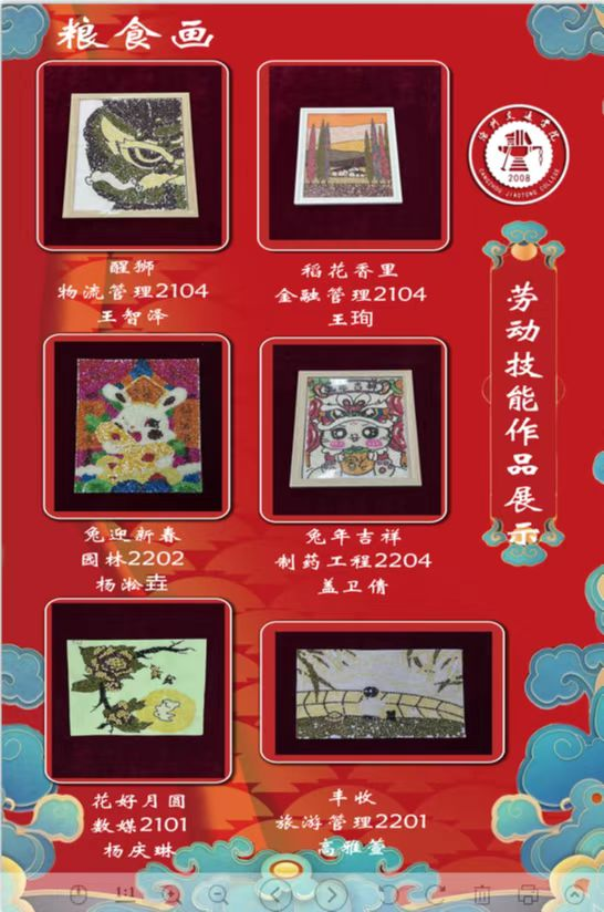 本次竞赛设有动漫制作、剪纸、烹饪家乡特色菜、十字绣、手工制作、制作粮食画六个项目。生动形象的动漫作品跃然纸上,惟妙惟肖的剪纸作品表达了对党和国家的热爱,一道道特色菜肴为家乡代言,一幅幅构思巧妙的粮食画、十字绣等作品歌颂生活的美好。