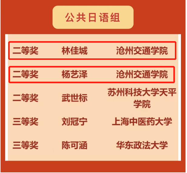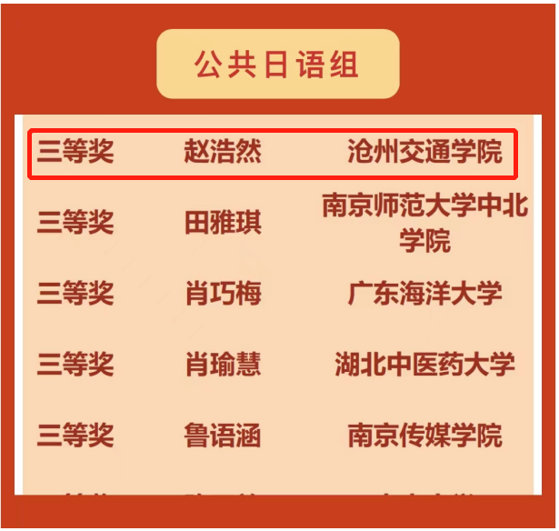 2023年4月10日,首届人民中国杯全国大学生日语阅读大赛获奖名单公布,德赢官网综合日语2101班的林佳城、杨艺泽荣获公共日语组二等奖;综合日语2201班的赵浩然、朱宇杰荣获公共日语组三等奖;德赢官网荣获优秀组织奖。