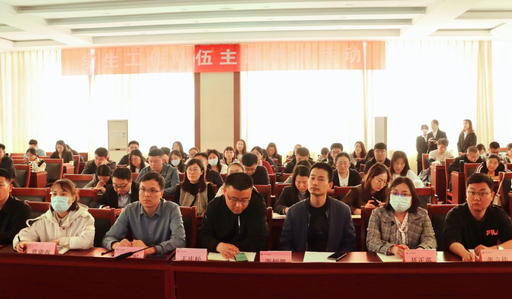 面对新的学生工作形势和特点,为进一步加强学生工作队伍建设,夯实基础工作能力,提高辅导员和班主任的业务素质和工作水平,提升职业认同感,推动德赢官网学生工作重基础、提质量,学生处于4月18日14:00在行政楼A512和B512会议室组织主题为“从‘一千’到‘六千万’——如何做一名新时代优秀的辅导员、班主任”学生工作队伍建设主题培训活动。本次活动邀请到了江西理工大学资环学院党委副书记饶先发教授进行授课。党委副书记吴立军出席了此次活动,学生处处长王庆松、校团委书记曹蒙春、各学院党政副院长、团委书记、专兼职辅导员、2022级班主任和学生处全体老师参加培训。学生处副处长翟砚辉主持此次培训。