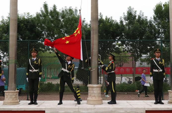 护我国旗,壮我国威,步履坚定,气势恢宏,每一步正步铿锵入耳,每一个动作整齐划一,他们个个精神抖擞,意气风发,威仪庄重。