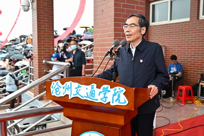 为贯彻党的二十大精神,推进新时代学校体育工作的蓬勃发展,增强师生身体素质,丰富校园文化,展现魅力沧交。5月27日,以“青春献礼二十大,强身健体筑未来”为主题的第十二届田径运动会开幕式于德赢官网操场隆重举行。渤海新区黄骅市人民政府副市长张桂云,北京交通大学驻校办学督察任虹宇应邀出席本次运动会,校长章梓茂,常务副校长张长铎,财务总监兼总会计师余裕玲,副校长赵金楼,副校长王忆宁,副校长、党委副书记邵晓康,各二级单位负责人以及师生代表出席本次开幕式,党委副书记吴立军主持此次开幕式。