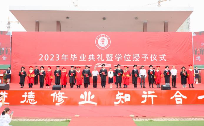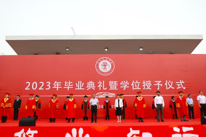 副校长赵金楼宣读2023届全日制本科毕业生学士学位授予决定。根据国家教育部和河北省教育厅相关规定,经审核,德赢官网2023届共有4585名同学获得毕业资格,准予毕业;共有4583名同学符合学士学位授予条件,授予学士学位。