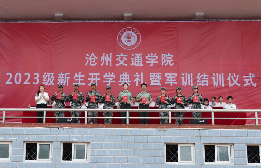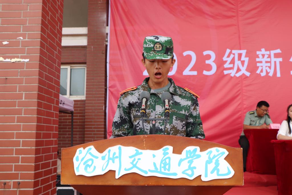 校长章梓茂在致辞中首先向2023级同学们的加入表示热烈的欢迎,他表示相逢在黄骅这座英雄的城市,希望同学们能够不负时光,因此提出了三点希望和建议,与同学们共勉。其一是要弘扬军训精神,努力成为体魄强健、人格健全的健康青年,希望现在养成的良好行为习惯能为今后良好学风打下坚实的基础。其二是要牢记学校“进德修业 知行合一”的校训,希望同学们能彻底理解校训的核心要义,深刻认识自身所面临的时代机遇和历史责任,从而实现生命价值。其三是告诫同学们脚踏实地、拼搏进取是沧交人的底色。要勇攀知识高峰,拒绝“躺平”“摆烂”和“佛系”的姿态,书写最美的青春篇章。最后,章校长祝愿每一位新加入的沧交学子,都能够在这里绽放青春的活力,度过美好的大学时光,学有所成,健康成长!