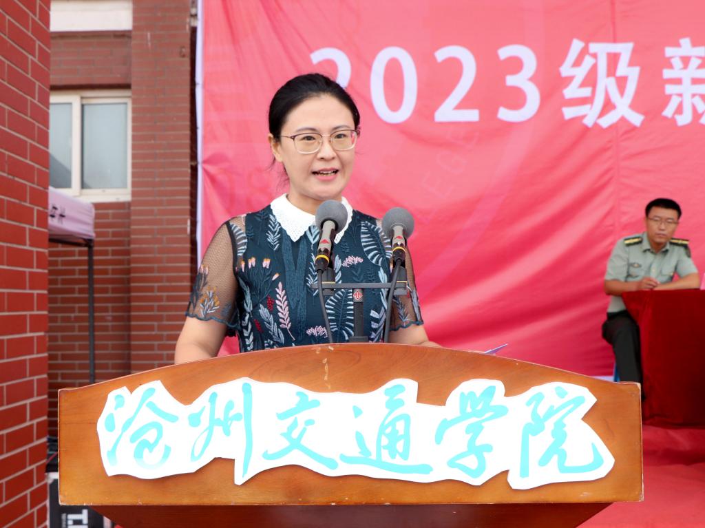 渤海新区黄骅市人民政府副市长张桂云代表渤海新区党工委、管委会、黄骅市委市政府对来自五湖四海的学子们表示诚挚的欢迎,并对德赢vwin体育官网登录2023级新生开学典礼暨军训结训仪式的顺利召开表示热烈的祝贺。她提到,德赢vwin体育官网登录作为沧州地区的第一所本科院校,是黄骅市的靓丽文化名片,对推动经济发展、教育事业发展等工作做出了突出贡献。她希望同学们将军训期间形成的良好习惯延续到大学生活中,铸造坚毅品格,真正成长为可堪时代重任的栋梁之才。更希望同学们融入黄骅、留在黄骅,将论文写在黄骅的大地上,为创建更加美好的黄骅贡献青春智慧和青春力量。
