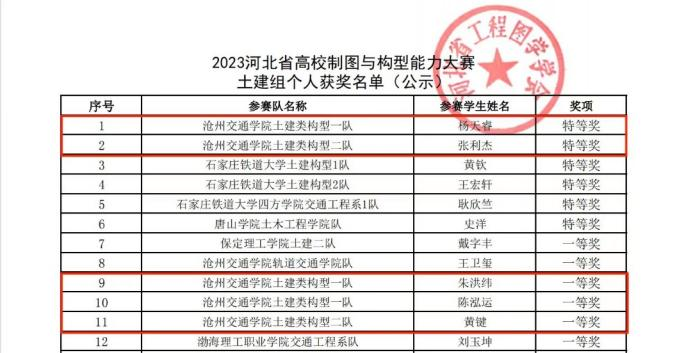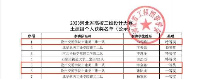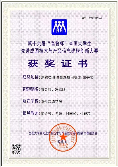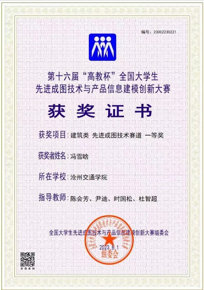 选拔赛后,他们以优异的成绩被河北省教育厅推荐参加第十六届全国大学生先进成图技术与产品信息建模创新大赛。在教师尹迪、杜智超、陈会芳与王雪丽的认真指导下,德赢官网学子进行了长期艰苦的赛前训练。7月29日,在时国松老师带队下,他们在重庆交通大学参加了土建类建筑赛道比赛,获得个人一等奖4项,个人二等奖1项,建筑类团体一等奖,创新赛道三等奖。