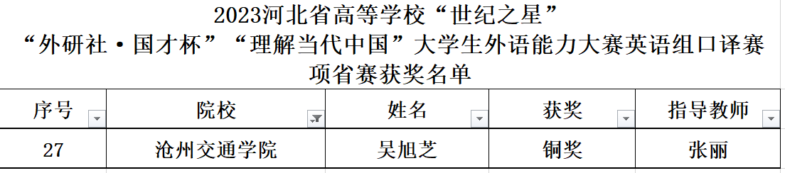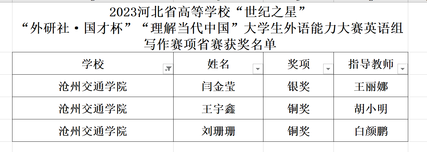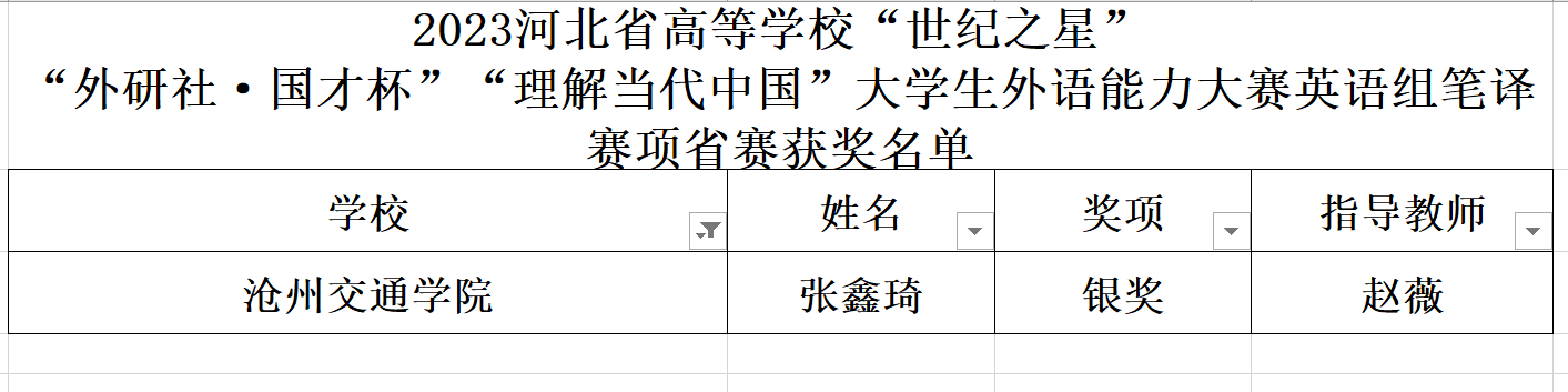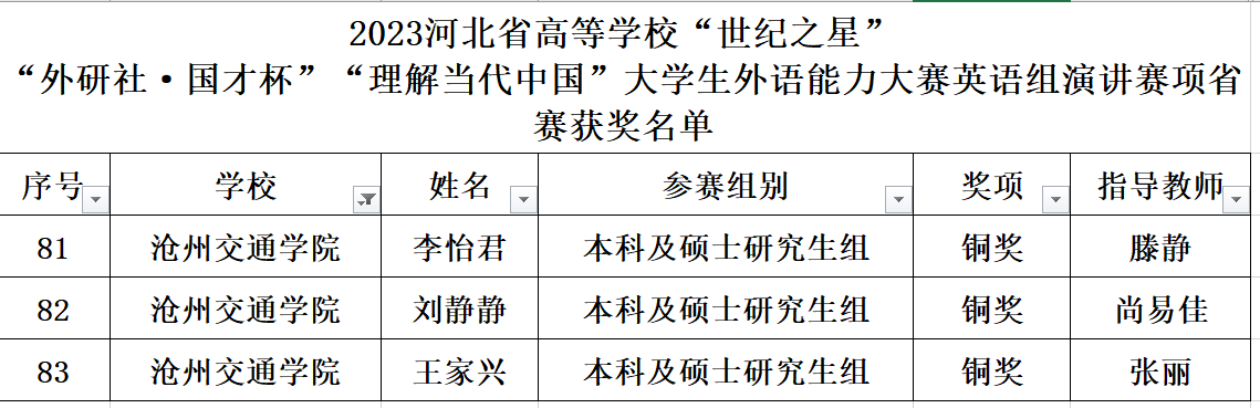 11月5日,由河北省教育厅主办的“外研社•国才杯”“理解当代中国”全国大学生外语能力大赛(河北赛区)以及河北省高校“世纪之星”外语金课团队大赛圆满落幕。在本次大赛中,来自全省52所高校共693名选手同场竞技。德赢官网共有11位同学分别参加英语阅读、写作、笔译、演讲、口译的河北省复赛,斩获三银八铜。同时,德赢官网外国语学院大学英语教研室滕静、李旻、王丽娜、伊云军、马玉玲组成的教师团队获得河北省高校“世纪之星”外语金课团队大赛省级三等奖。