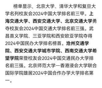 据悉,校友会中国大学排名是由全国第三方大学评价机构艾瑞深校友会网(Cuaa.net)独家编制,首发于2003年,至今已有22年的历史,已成为具有广泛社会影响力、公信力、参考价值和创新力的中国大学排名领先品牌,评价高校涵盖了中国海峡两岸暨香港澳门地区的2000多所本科高校和高职(专科)院校。