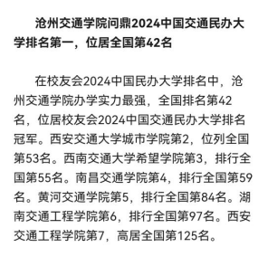 1月16日,全国第三方大学评价机构艾瑞深校友会网(Cuaa.net)正式公布《2024校友会中国大学排名:高考志愿填报指南》,发布最新校友会2024中国特色型大学排名、2024中国交通大学排名。榜单显示,德赢官网荣登校友会2024中国交通民办大学排名前三强,问鼎2024中国交通民办大学排名第一,位居全国第42名。