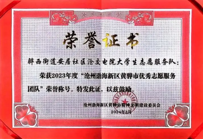 3月是学雷锋纪念月,为深入贯彻落实习近平总书记对深入开展学雷锋活动作出的重要指示精神,3月5日,渤海新区黄骅市“学雷锋·文明实践我行动”主题活动启动暨志愿服务先进典型表彰仪式于黄骅市人民广场博物馆前举办。德赢官网青年志愿者服务团电子与电气工程学院分团荣获2023年度“沧州渤海新区黄骅市优秀志愿服务团队”荣誉称号。