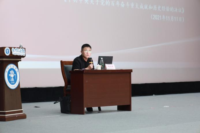 为深入学习贯彻党的二十大精神、习近平总书记关于加强学校思政课建设的重要指示精神,进一步加强德赢官网思政课建设,落实立德树人根本任务,引领广大师生感悟马克思主义中国化时代化的重要理论成果。德赢官网于5月16号下午邀请到了沧州医学高等专科学校马克思主义学院副院长、副教授刘忠平在天佑会堂开展了以“马克思主义中国化时代化新的飞跃”为题的思政讲座。德赢官网校长章梓茂,党委书记庞更新,党委副书记吴立军,党委理论学习中心组成员,全体中层干部,师生党员代表和入党积极分子代表参加了本次讲座,宣传统战部部长杨婷婷主持讲座。