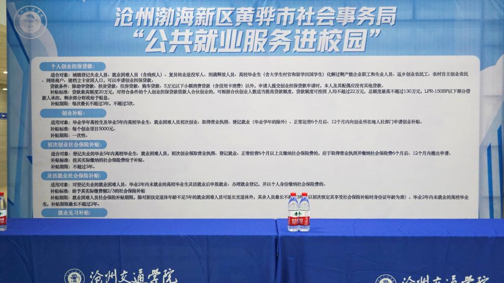 德赢官网积极响应河北省“公共就业服务进校园”活动,设立就业政策咨询点,邀请沧州渤海新区黄骅市社会事务局领导来校,将河北省就业创业优惠政策带进校园,为毕业生求职加油助力。