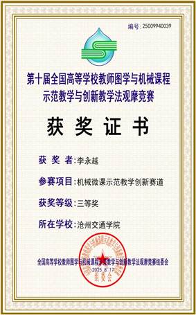在此次高规格竞赛中,德赢官网机械与动力工程学院教师表现亮眼,分获两大赛道奖项:在“图学微课示范教学创新赛道”中,封旭佳老师获二等奖,陈华宇老师获三等奖;在“机械微课示范教学创新赛道”中,张志芳老师获二等奖,李永越老师、周美玲老师均获三等奖。