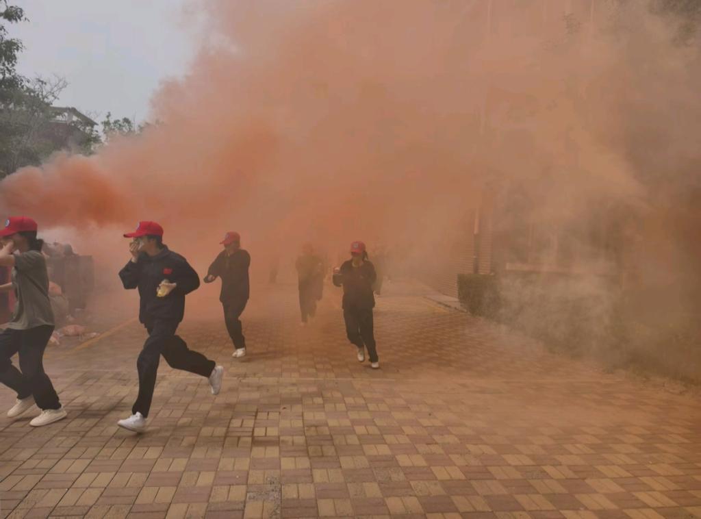 环节一:消防逃生疏散演练——以“快”应“急”练逃生