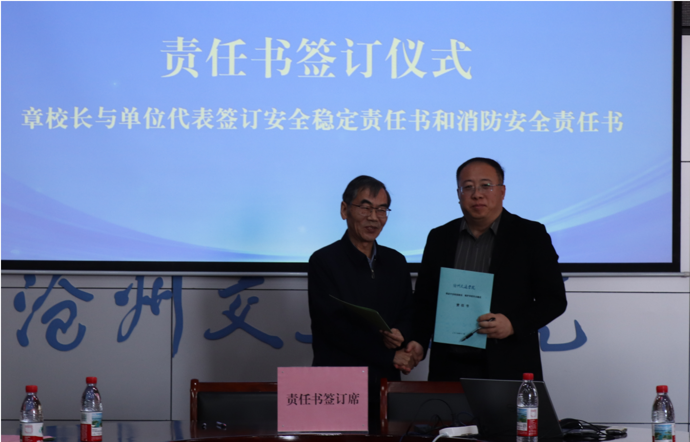 会上,安全保卫处处长周鹏作了2025年学校安全稳定工作汇报。章梓茂校长代表学校与实验实训管理中心、化学与制药工程学院等相关单位负责人签订了《2025年安全稳定责任书》和《2025年消防安全责任书》。