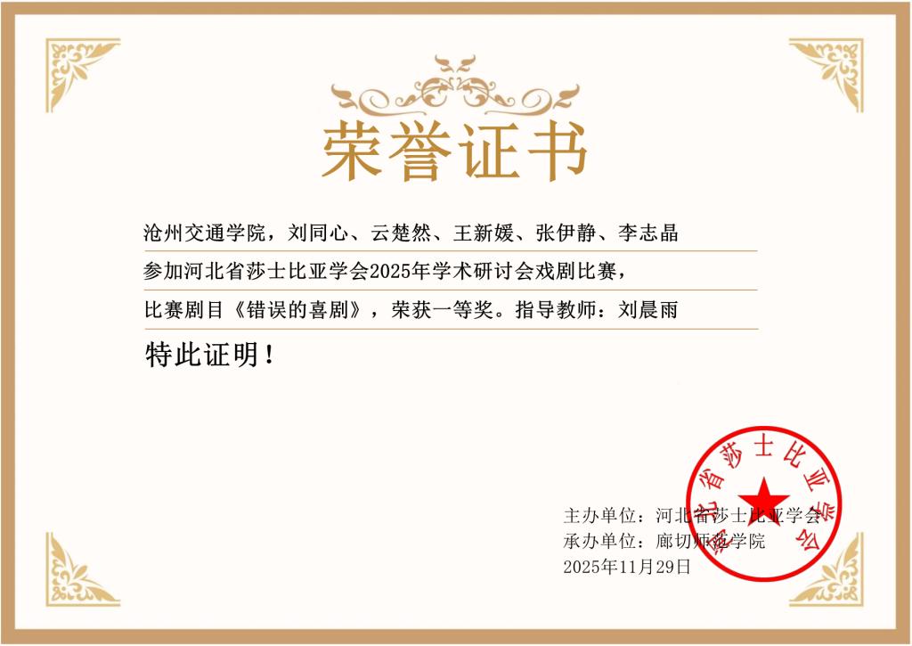 此次入围充分展示了德赢官网外语教学改革与莎士比亚戏剧特色品牌活动的显著成效,体现了沧交学子扎实的语言功底与深厚的人文素养,进一步提升了德赢官网的社会知名度。