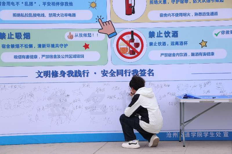 仪式结束后,现场互动区域设置的知识答题、问卷调研、签名留念、打卡拍照等环节吸引了广大师生积极参与,大家自发将活动内容分享至朋友圈,成为文明安全理念的“代言人”,校园里营造出浓厚的活动氛围。